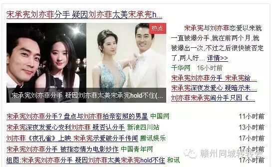 而在出这事之前,这几天的刘亦菲就一直在头条上没下来,不知究竟是机缘巧合,还是有意安排。刘亦菲和宋承宪“被分手”了,娱乐圈中这种绯闻着实不足为奇,基本也都是艺人有作品的时候这类新闻一夜之间就全出来了。
