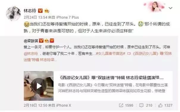 2月24日,林志玲为《女儿国》做宣传时曾发过一条推文