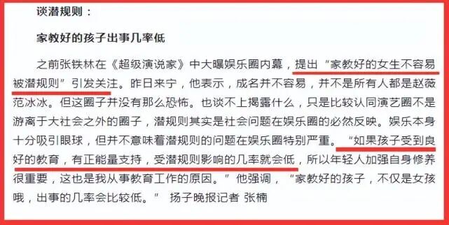 同时,他还大谈育女心经,称“家教好的女生不容易被潜规则!”