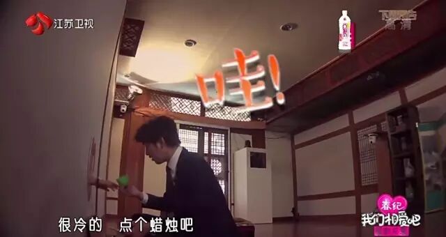 他们第一次见面的时候,是在两个分开的房间里的,能够听到彼此的声音,到哪见不到对面的人是谁。两个人需要通过这面墙中间的小窗户来互相送礼~