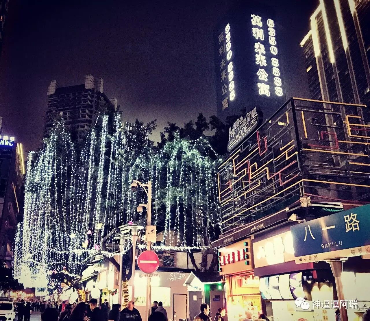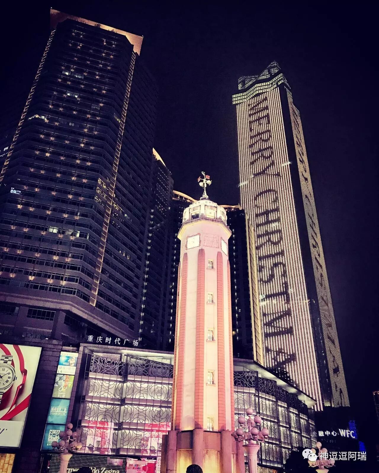 当时临近圣诞,解放碑周围点缀的色彩斑斓,街上熙熙攘攘,节日气氛十分浓郁。