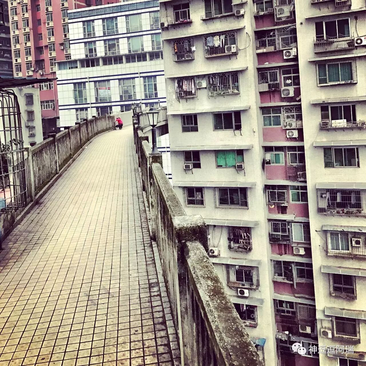 天桥随处可见,从一头走到另外一头,通向哪里无所得知,经常在两山之间随意一横,楼间穿梭,与地面落差从三四楼到十几楼不等。