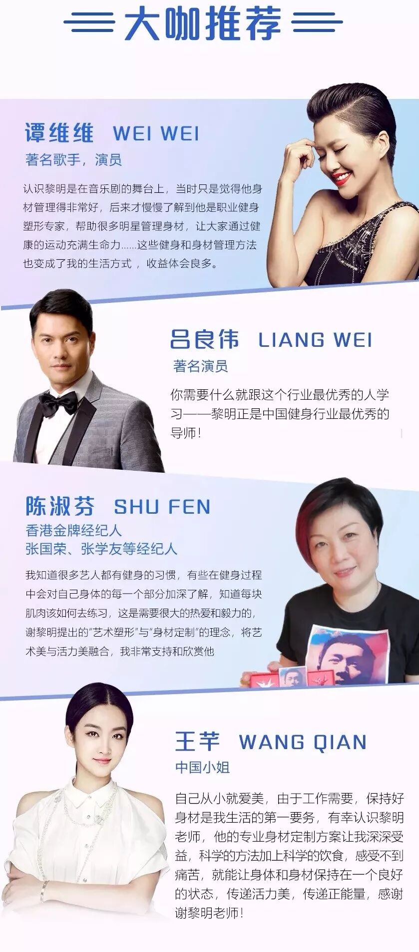 谢黎明老师除了给学员授课,还帮助很多明星艺人,不节食,不大量运动,轻松练出更纤细健美的身材,广受赞扬: