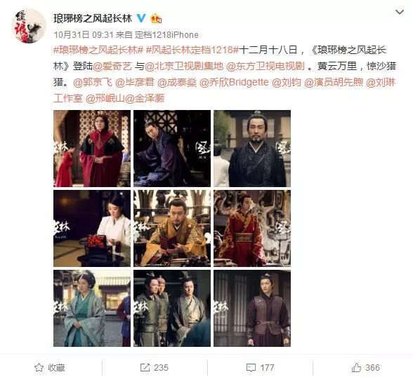 十月的最后一天,琅琊榜之风起长林官博宣布定档于12月18日,这部当年红极一时的现象级古装权谋大戏风云再起,以全新的情节及演员阵容卷土重来。