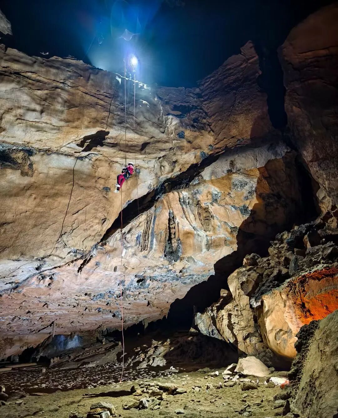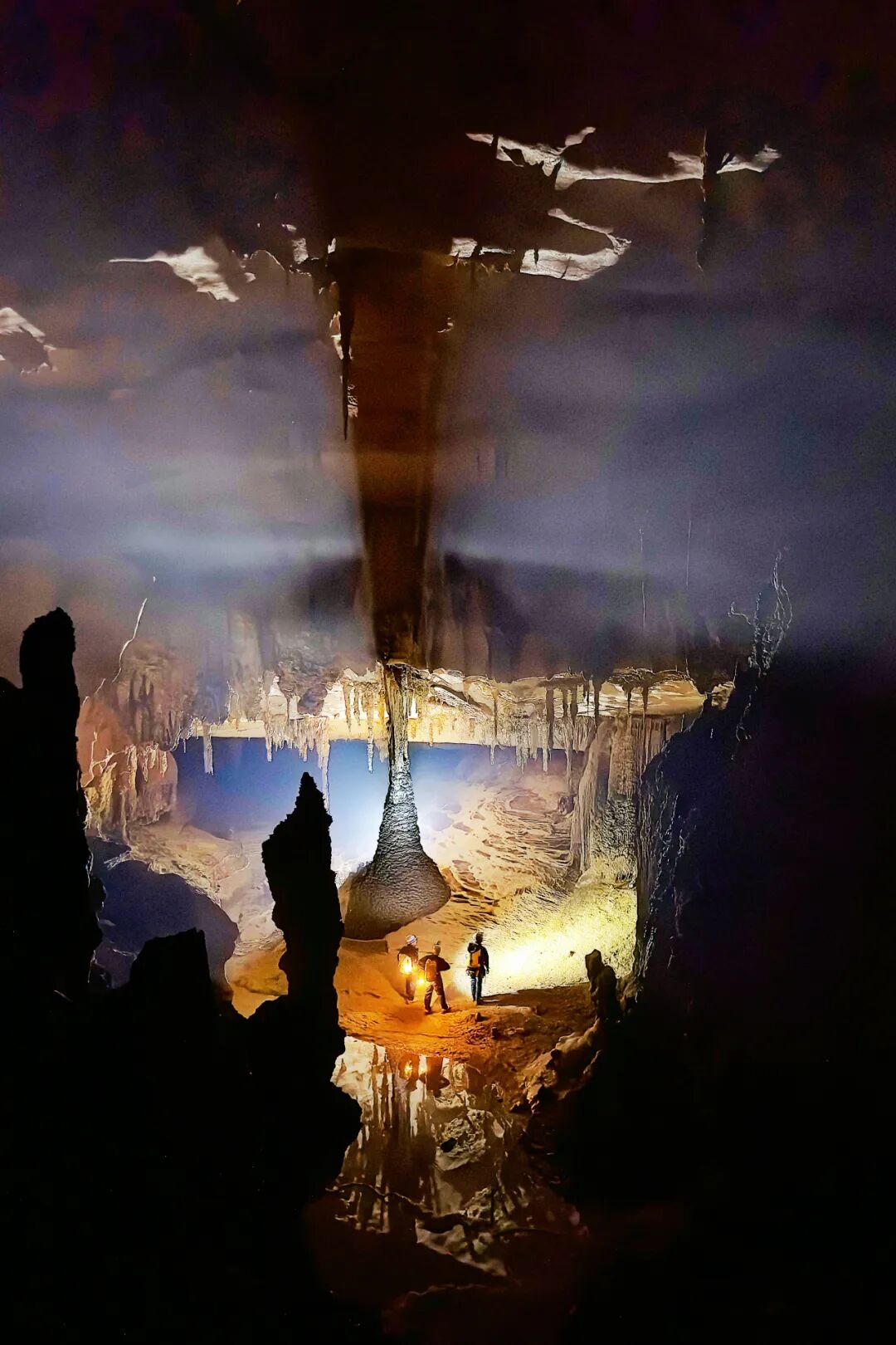 踏入洞中,初时的光亮会逐渐被深邃的黑暗所吞噬,狭窄压抑的裂缝和尖锐的断崖,不断挑战着探险者的心理极限和探险技能。