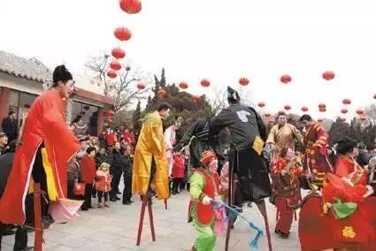 是民间盛行的一种群众性技艺表演。表演者不但以长木缚于足行走,还能跳跃和舞剑,高跷分高跷、中跷和跑跷三种,最高者一丈多。据说踩高跷这种形式,原来是古代人为了采集树上的野果为食,给自己的腿上绑两根长棍而发展起来的一种跷技活动。