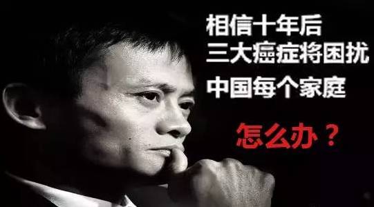 马云说:相信十年以后中国三大癌症将会困扰着每一个家庭,肝癌,肺癌,胃癌。肝癌,很多可能是因为水,肺癌是因为我们的空气,胃癌,是我们的食物。最担心的是挣的钱不够医药费。