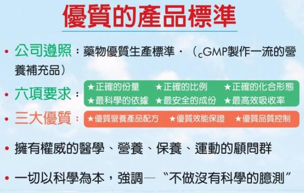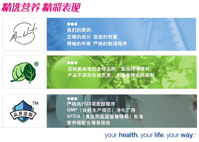 拥有一流的生产设备、自己的科学家和研发团队,以及为营养品所定制的最高标准;还有颇具竞争力的奖励计划;得心应手的销售工具;以及屡屡获得殊荣的产品。公司始终如一的使命是:研发并制造能为细胞提供最佳营养素的高品质营养补充品。