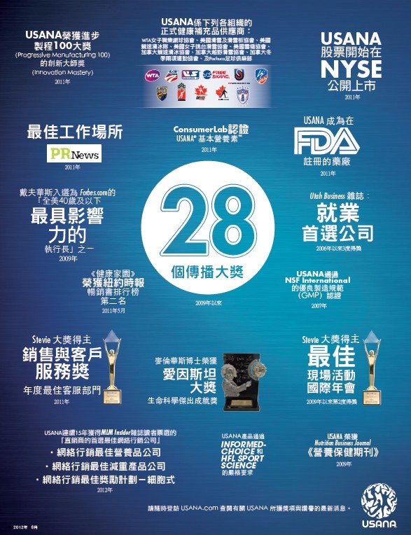 自从1992年成立以来,USANA已经实现了许多里程碑,取得了数项荣誉大奖,并赢得了许多业界专家的认可。