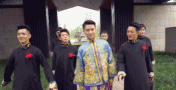 上午10点,陈晓率领“黑色长衫男团”手持红色捧花时刻预备“抢亲”。
