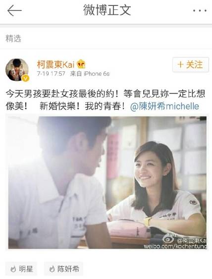 陈妍希:“我没想过我能碰到最爱的人还能结婚,我会尽这辈子最大的努力去守住这份幸福。”之后还略带羞涩地补了一句:“老公我爱你一生一世”。