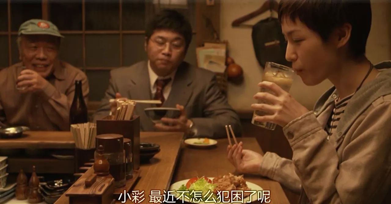 小彩不能喝啤酒,于是老板亲自为她做了一杯Highball,这是一种女人也能喝的口味淡雅的鸡尾酒。这杯酒在菜单中并没有,老板只为她一个做。刚毅的老板慈祥地看着干净又柔弱的小彩,满眼都是关爱。这一刻那些不能言说的的温情,悄然融化在威士忌和冰块中。