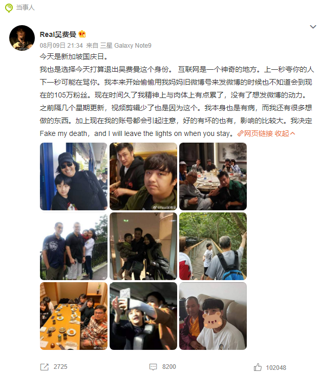 吴费曼选择退出吴费曼这个身份,无非是困扰过于伤害人,再加上费曼身体本身就不是太好,所以选择退出网络才是最正确的选择。