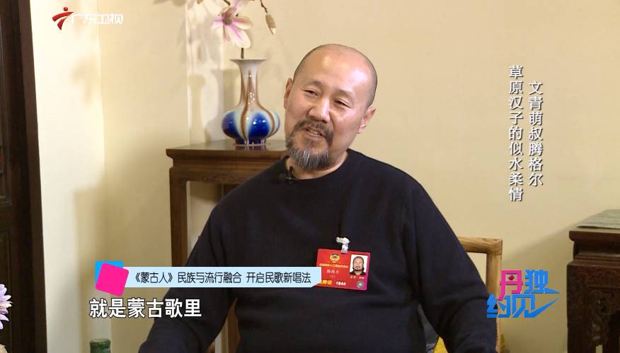 腾格尔:对,《蒙古人》是我1984年创作的。那个时候特别是我们内蒙古地区。就是蒙古歌里,所谓的流行音乐,带一点现代因素的,这样的歌没有,原来就没有,只有从《蒙古人》这首歌开始。那么《蒙古人》这首歌也是一个很纯粹的蒙古音乐,同时呢这么一个简单的旋律里,还是有一种时代的节奏,原来蒙古歌里,是不会写这个哆来咪发唆拉西,这个音是没有。
