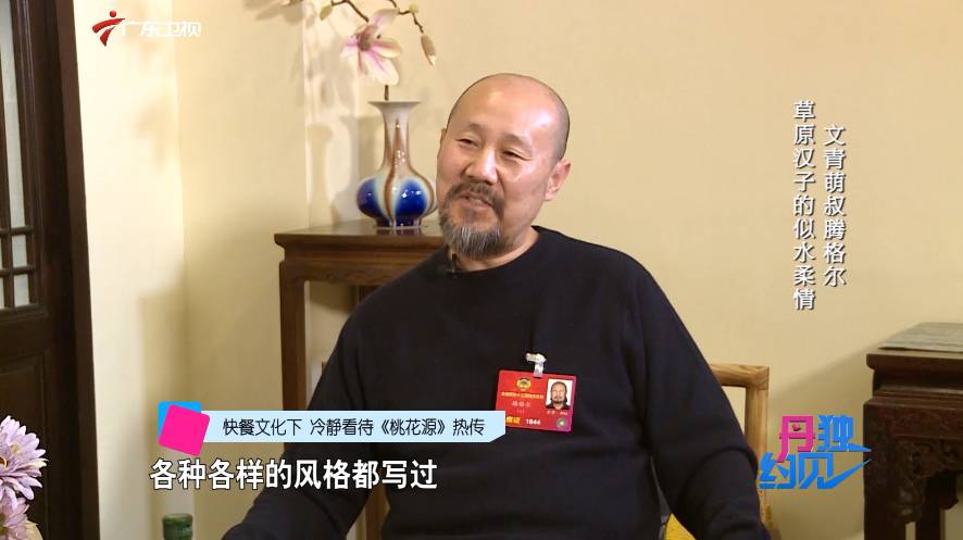 跟《天堂》不一样的是,《天堂》那个特别火了以后,我是一种由衷的那种高兴 《桃花源》火了以后,我也是跟着大家,哈哈哈,我也就是这么笑的,你看这样的作品,它来的也快,去的也快。不像那个《蒙古人》,《天堂》会成为经典。