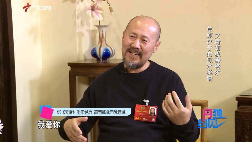 腾格尔:《天堂》 怎么写成这样呢?你比如说我一边写一边唱,这歌写到这儿的时候它必须得往上走。我爱你,这个出来了,这歌完了还不过瘾 。那你怎么过瘾?还得往上走这歌就变成一个大歌。一个很棒的作品了。
