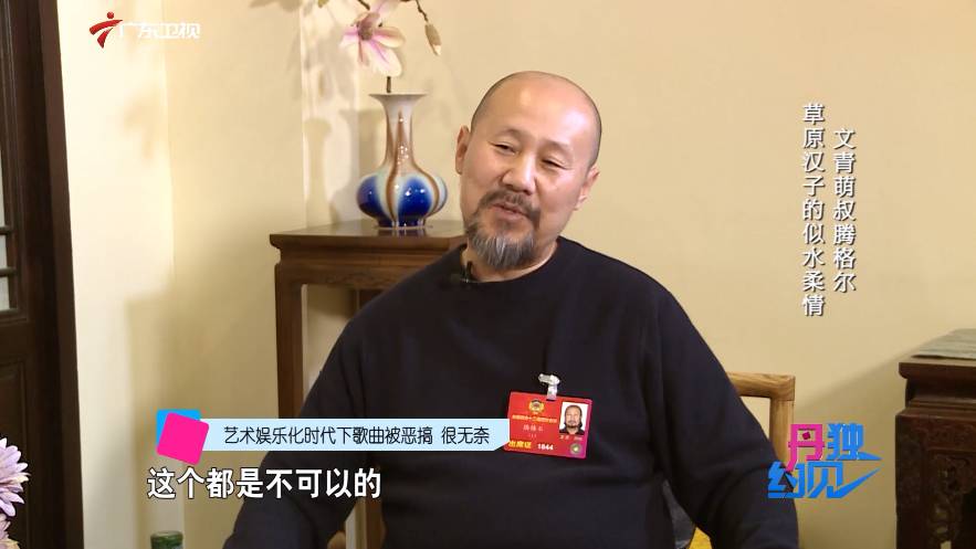腾格尔:我看完以后我也哈哈大笑,现在好多人的那个目的不一样,有的人纯粹是为了艺术有的人不是为了这样,而是为了眼前的某些利益,恶搞或者低俗化,这个都是不可以的。