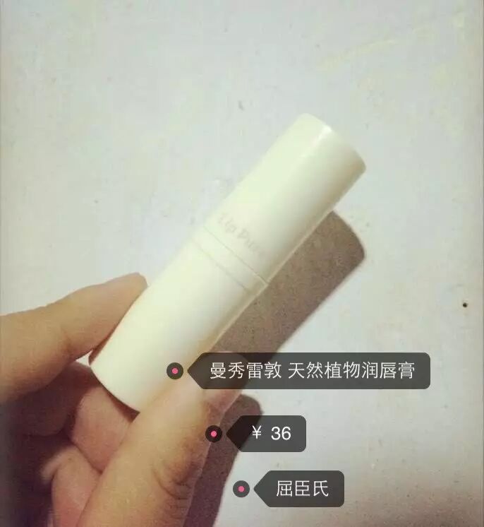 推荐理由:一款堪称经典的唇膏!天然植物,食品级成分。没有浓烈的芳香,只有天然蜂蜜和植物精萃的淡香。外观温暖简单大方,有点半透的感觉。滋润度很高,不油腻,吸收很好。用在嘴上的东西难免会不小心吃进去,它的原料也比较安全,是蜂蜡,用起来很放心~