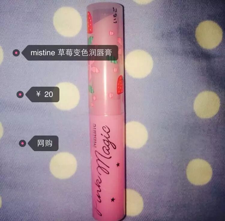 推荐理由:妙粉色魔法,不夸张的说,可以吃的润唇膏。涂上后会根据唇部的温度及PH值产生颜色的变化,不油也不太粘,而且非常滋润保湿,先是透明无色,然后变成透明的自然淡粉色!颜色的深浅度可以由反复涂抹的次数来调节哦~
