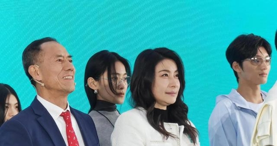 她弯腰和工作人员说话时,颈间的皱纹清晰可见。