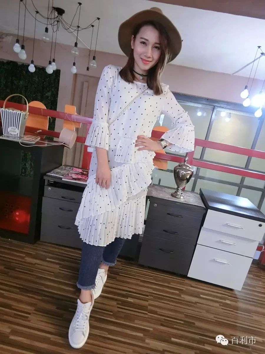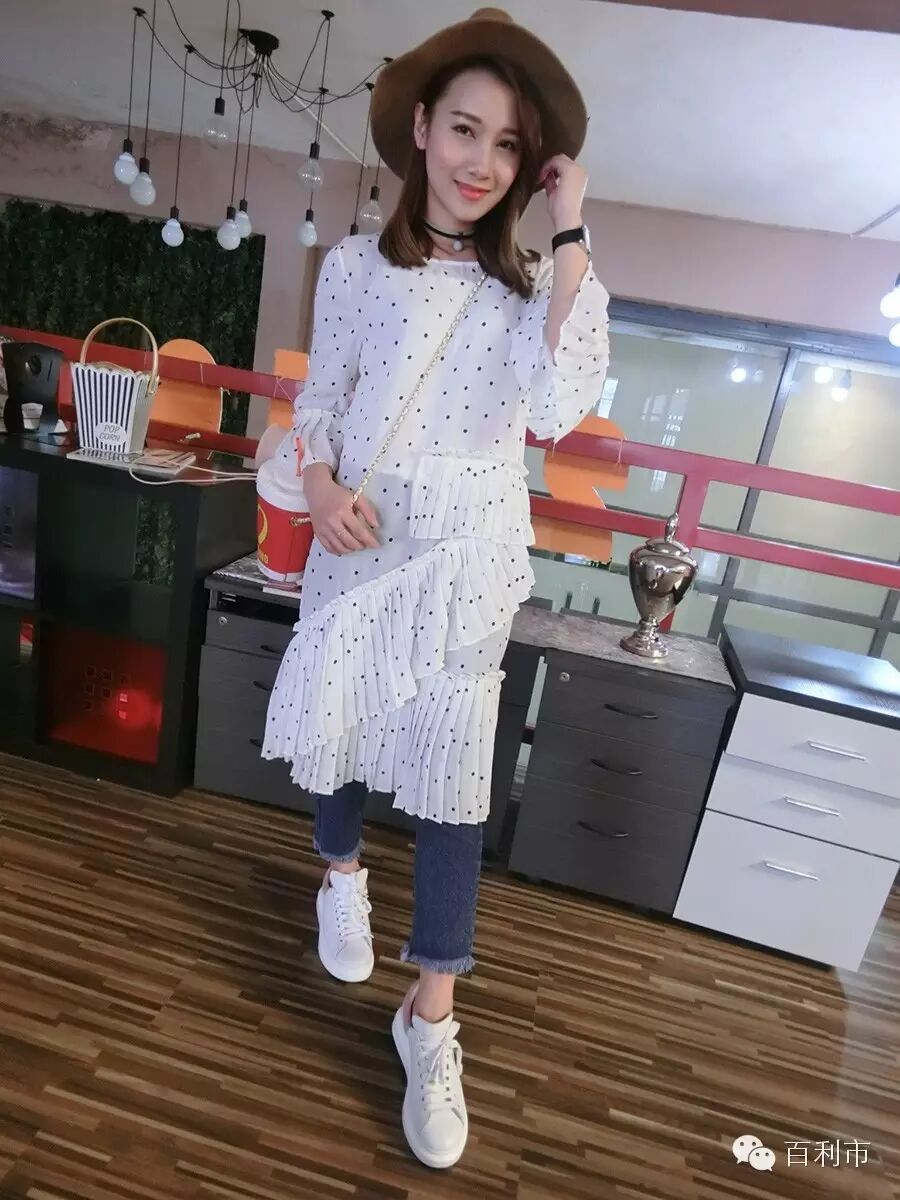 波点荷叶边雪纺裙上的荷叶边跟随你的脚步飘动,春天就要像这样活力满满。