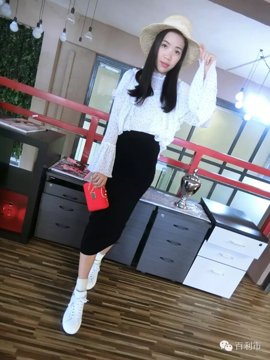 波点荷叶边短款上衣,搭配女人味十足的包裙,你的玲珑曲线尽情显露吧。