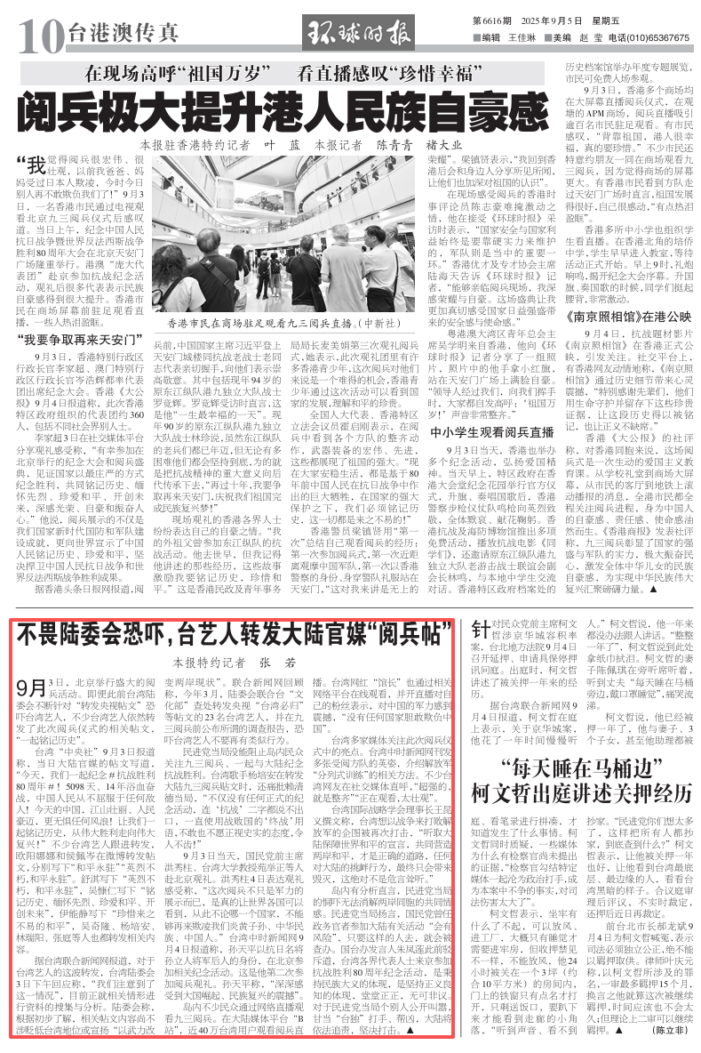 不畏陆委会恐吓,台艺人转发大陆官媒“阅兵帖”