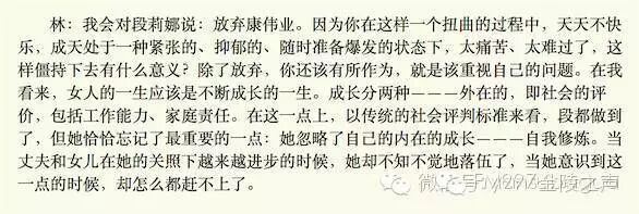 这个稿子里受访的上海妇女学会理事,并没与任何“撕小三”的念头,相反她给发妻段莉娜和小三林珠的情感建议都是及时止损,离开不合适的男人。