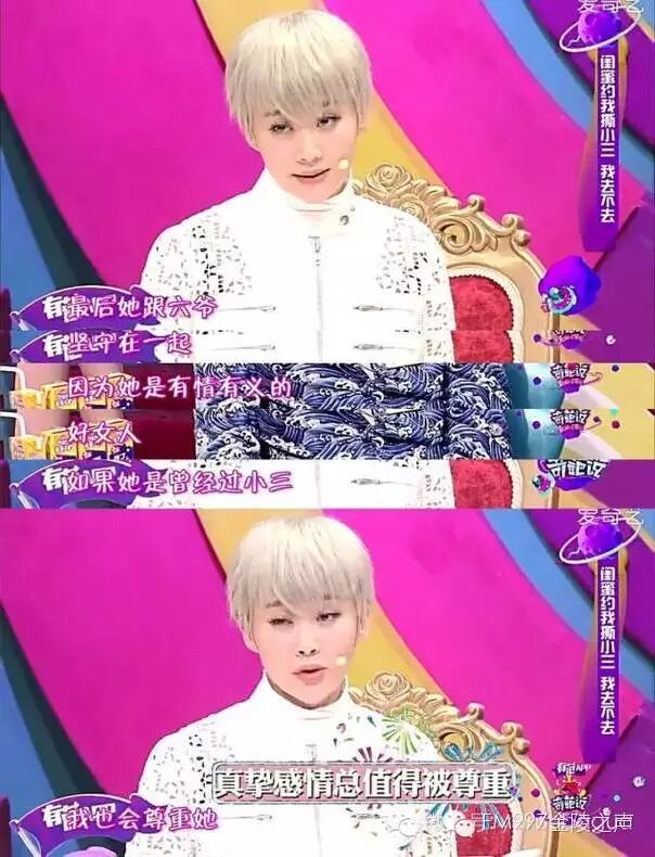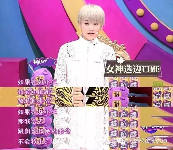 但这集《奇葩说》仍然选择了小三问题来当作辩题。不过设问已经比单纯讨论小三缓和得多了。只是:【闺蜜约我去撕小三,我要不要去?】