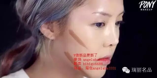 Step 1.双颊以及额头加深修容,打造小脸立体轮廓,想要白皙肌肤就不要舍不得用打底霜哦。