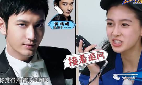 在“请借我电话”的游戏环节中,angelababy现场连线黄晓明,要引诱他说出节目组给定的话——“你要出音乐专辑吗?”