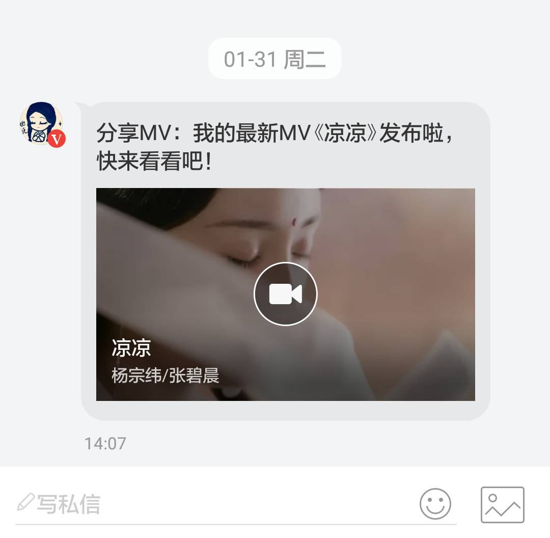 一个月前,张碧晨给我发了一条私信——