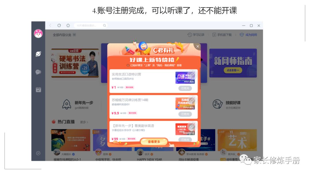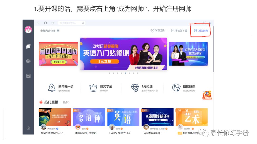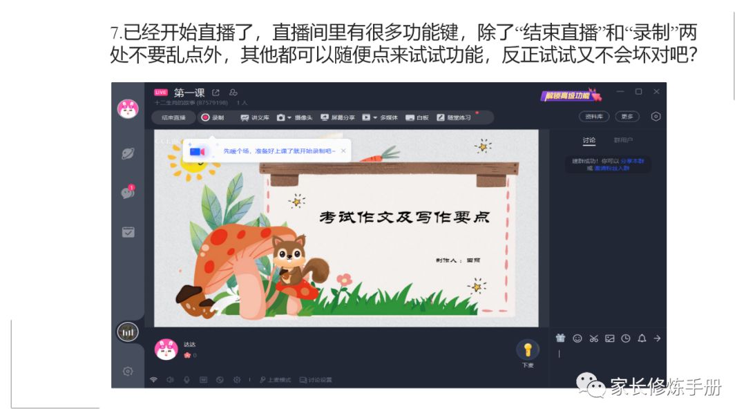 田丽|家信207-2020,一起成为网师(新手操作详解版)有图有解说 家长修炼手册 港台女星 2020-02-04 12:29:03 758 创作不易,用心坚持,欢迎请BaGua喝几杯爱心咖啡!打赏并支持本文 打赏并删除本文 改变不了,我就享受。既然已经注定要在家里待着,那我就做一个快乐的宅女神。01—一起做网师吧为什么?一、大势所趋。不解释。二、政治任务。你懂的。三、有趣有效。是真的。这是一个最好的时代,也是一个最坏的时代。区别在哪里?也许在于我们是一个什么样的人。标准很多,其中一个核心,窃以为是“与时俱进,终身学习”。我们是不是在终身学习?当然是。每一个都在不自知地吸收新知识,学习新技能。只是程度不同而已。如果一定要学习,何不选择一种更高效的学习方式?各种学习方式请自行参考下图,感谢图片制作者,此图至少为我节省了一千字……此图会让我们充分明白:直播是个好东西。02—如何成为网师为了给大家讲清楚这个问题,我借用了新身份,重新注册,并且把每一个步骤都截图出来,配以简单的文字说明,希望能帮助到大家一点点。当然,我不能保证我介绍的功能完全覆盖了,但这就是我目前接触和探索到的所有功能了,感谢和欢迎您勘误和补充,谢谢!03—学习是人的天性你是一个爱学习的人。请大家不用怀疑,因为每一个人都爱学习。因为好奇心是每个人的天性。因为好奇,所以学习。当我把直播技术分享给班上的孩子们,他们无不欢呼雀跃,跃跃欲试。作为一个四年级的孩子,直播并不是易事,但兴趣是最好的老师,兴趣带领他们不断摸索,不断试错,最终成功开课,成为小老师。昨晚收到一个孩子写下的直播感悟:非常真实,也非常珍贵。直播过的孩子普遍感受到直播之前会各种焦虑纠结,直播过后就觉得非常快乐,我也有同感。所以,无论什么原因,让我们成为网师,我们就只去享受吧!来,和我一起“改变不了,我就享受”!对了,祝贺以下同学,成为第一批幸福班网红小老师!棒棒!!★ ★ ★ 【21天瘦身打卡】★ ★ ★ 第1天:2.1-64.1公斤第2天:2.2-63.2公斤,比前一天轻了0.9公斤第3天:2.3-62公斤,比前一天轻了1.2公斤,总计轻了2.1公斤第4天:2.4-61.8公斤,比前一天轻了0.2公斤,总计轻了2.3公斤(小结:昨天犯了巨大的错误,一日三餐,晚餐晚上八点多才吃,体重肯定下不去的。改!)往期回顾:田丽|家信204-考虑了15个小时,豁出去了,开始21天瘦身打卡! 田丽|家信205-在家除了休息,还可以减肥,想想就开心 田丽|家信206-疫情之下,还能不能进行户外跑步? 创作不易,用心坚持,欢迎请BaGua喝几杯爱心咖啡!打赏并支持本文 打赏并删除本文 感谢您的支持鼓励,我会继续努力的!文章地址:用户邮箱:打赏金额:USDT 请输入数字点击”去打赏“,即可进行打赏支持本文章哦 田丽 About the Author 家长修炼手册 功能介绍:像孩子上学升级一样,家长也需要修炼进阶。 Related Posts 田丽|家信207-2020,一起成为网师(新手操作详解版)有图有解说 2020-02-04 12:29:03 田丽|家信23-驾经典之舟乘风破浪 2019-03-14 07:14:32 田丽|学生27-《幸福小报》第24期: 2019-03-12 19:55:47 田丽|家信109-孩子,我不用你请我吃海鲜…… 2018-11-19 07:02:18 田丽|家信NO.100-两年,100封信,20万字…… 2018-10-08 07:00:16 发表评论
