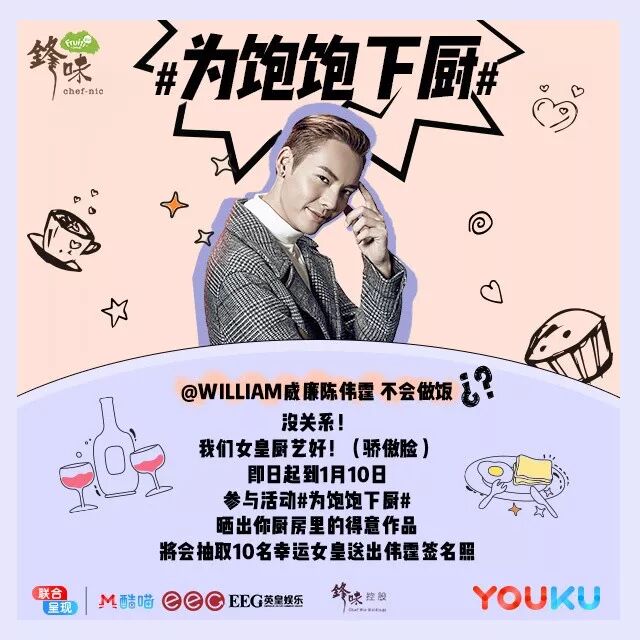霆锋:“美食和烹调把我从封闭的世界拉回来,我学会分享,也享受着分享。不如就在这里,透过【锋味】,让我们聊聊天、煮煮饭、吃香喝辣,挺好的。