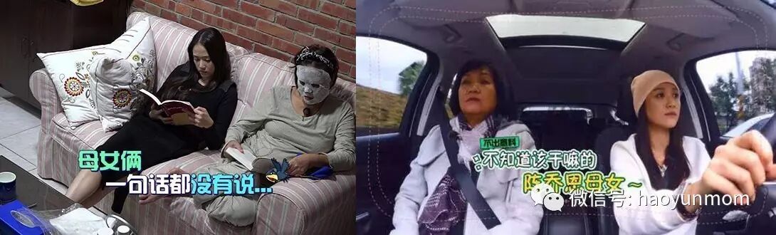 记得以前看湖南卫视的真人秀《旋风孝子》,觉得陈乔恩母女的相处模式特别典型。陈乔恩和母亲在一起待的6天5夜中,其实有些隔阂和尴尬。母女坐在同一张沙发上,无话可说,同乘一辆车,也略显尴尬。