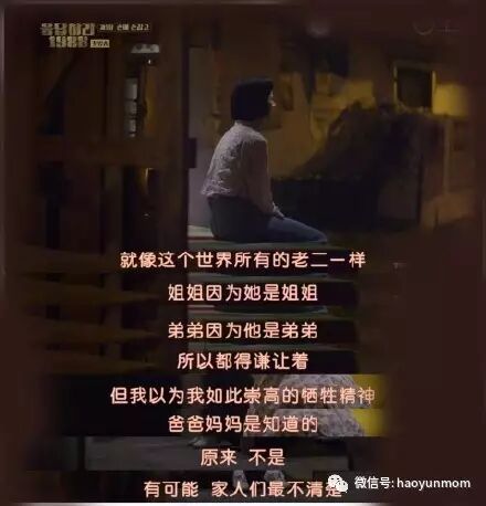 你如果像《请回答1988》里的德善一样,处在家里老二的位置,或者是家里那个事事都要谦让,所不喜欢的一切就这样变成了理所当然....就会更理解,德善在马达加斯加退赛无法参加奥运后的情绪大爆发吧!