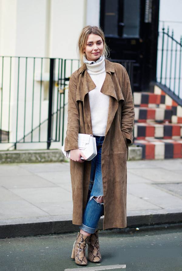STYLE 1:风衣+白色上衣+蓝色牛仔裤