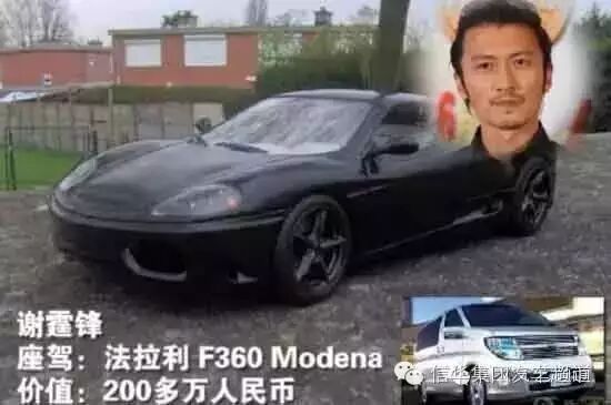 谢霆锋以叛逆的青年形象出道,还曾因顶包案轰动一时,而上图中的F360为他当时肇事车辆。如今成功转型的他日渐低调,换了一台日产MPV代步。