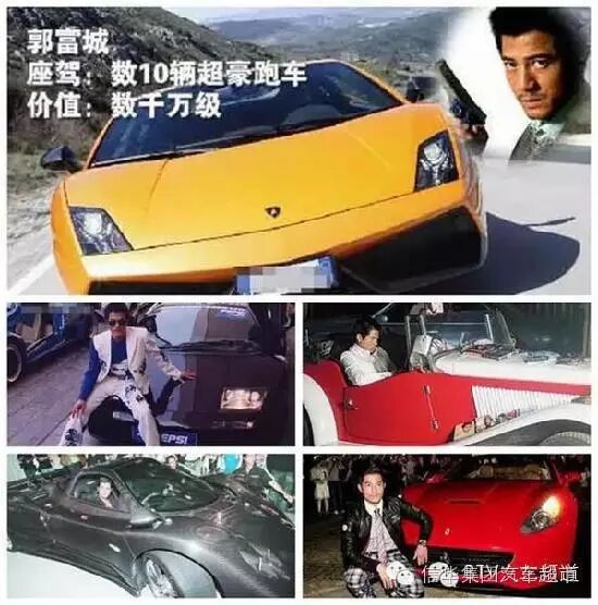 天王郭富城也酷爱收藏跑车,虽然他“只有”12辆跑车,但几乎每一辆都是限量版。特别是2010年购进的“幽灵之子”,郭富城在谈这辆车时,竟然说它就像名牌手袋。