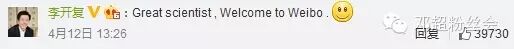 随后,演员邓超、李治廷、李开复等人纷纷转发霍金的微博,甚至还用英语评论与大师交流。邓超还搞笑留言,展现了搞笑英语。而李治廷、李开复等人都对科学家霍金表示欢迎。