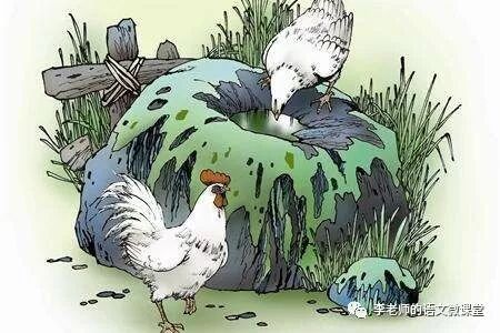 它不像汉白玉那样的细腻,可以凿下刻字雕花,也不像大青石那样的光滑,可以供来浣纱捶布;它静静地卧在那里,院边的槐荫没有庇覆它,花儿也不再在它身边生长。荒草便繁衍出来,枝蔓上下,慢慢地,竟锈上了绿苔、黑斑。我们这些做孩子的,也讨厌起它来,曾合伙要搬走它,但力气又不足;虽时时咒骂它,嫌弃它,也无可奈何,只好任它留在那里去了。