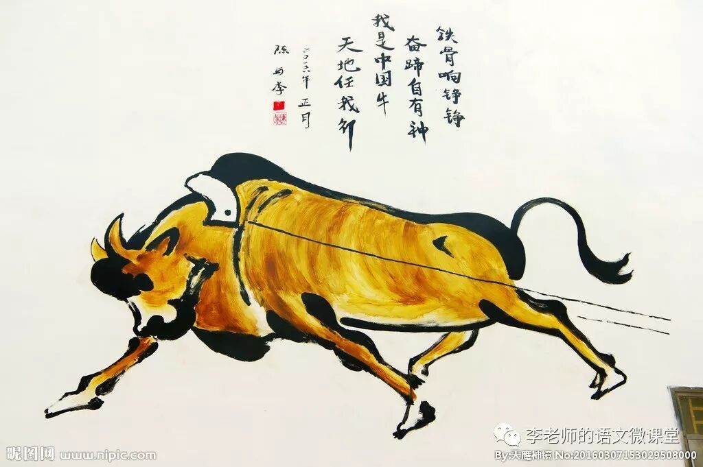 中国的牛,没有成群奔跑的习惯,永远沉沉实实的,默默地工作,平心静气.这就是中国的牛。