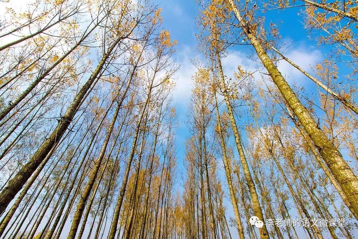 那是力争上游的一种树,笔直的干,笔直的枝。它的干呢,通常是丈把高,像是加以人工似的,一丈以内,绝无旁枝;它所有的丫枝呢,一律向上,而且紧紧靠拢,也像是加以人工似的,成为一束,绝无横斜逸出;它的宽大的叶子也是片片向上,几乎没有斜生的,更不用说倒垂了;它的皮,光滑而有银色的晕圈,微微泛出淡青色。这是虽在北方的风雪的压迫下却保持着倔强挺立的一种树!哪怕只有碗来粗细罢,它却努力向上发展,高到丈许,二丈,参天耸立,不折不挠,对抗着西北风。