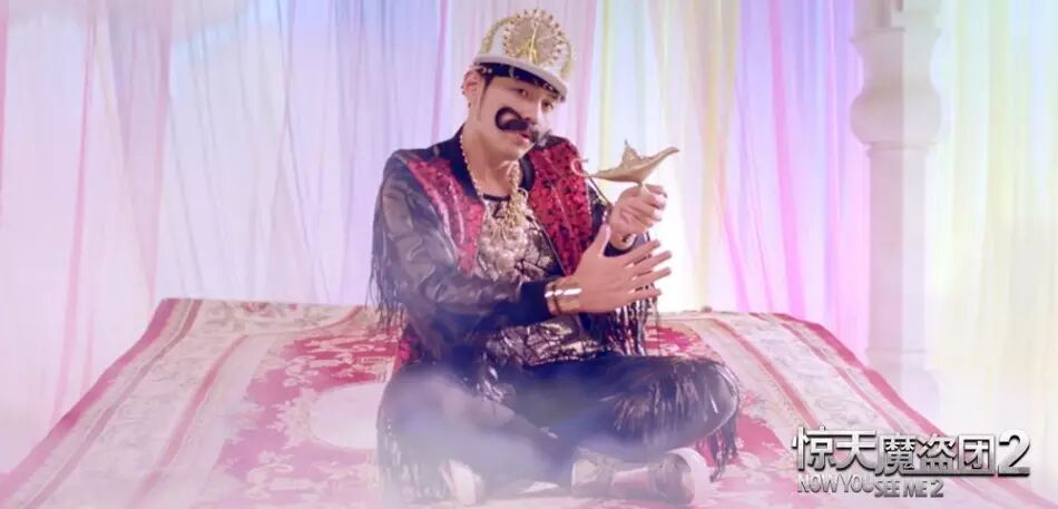 此前MRJ官方微博晒出周杰伦与助理摆出“你看不见我”的经典手势,便有猜测与《惊天魔盗团2》全球主题曲有关,果不其然,在周杰伦亲自执导的全球主题曲MV中,周董不但加入了该手势 ,更是将“你看不见我”的唱词魔性般的植入观众脑海里,天王再掀流行风潮。多元化的MV画风里,周董转瞬间幻化为坐着飞毯的印度神人,让两个呆萌对手在他的幻术中忘乎所以,身中美人计掉入他的陷阱中;时而化身“舞王”,带领一群嘻哈潮男和性感辣妹大秀舞技,如同身处魔幻大party。