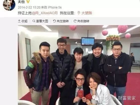 在他的微博上,他大方晒出了自己和太太领证的照片