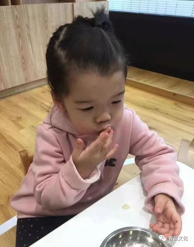 从这么多照片背景的木质地板来看,应该都是在幼儿园里拍的!虽然王大姐的吃相显得有些狼吞虎咽,不太淑女,但是至少都吃得很认真,而且很自觉!既然妈妈说的是“两幅面孔”,那么可以想象王唯伊在家里是多么的难搞了!