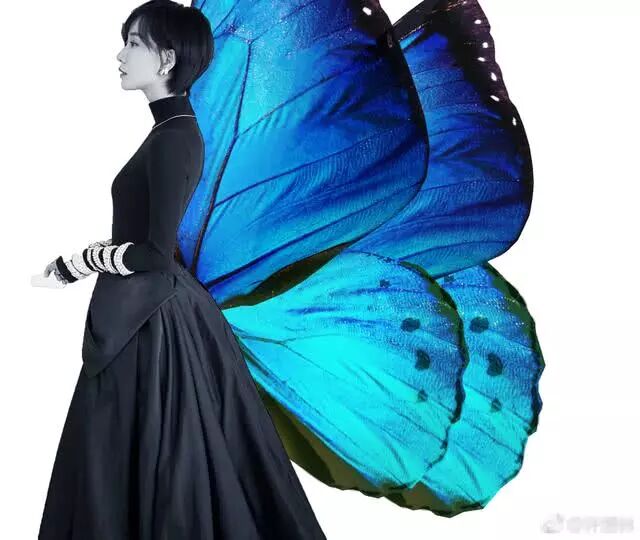 侧面的王珞丹看起来更像是精灵,腰部和臀部那里有明显的弧线,一对水幻化成的蝴蝶翅膀让她整个人看起来更有仙气了。