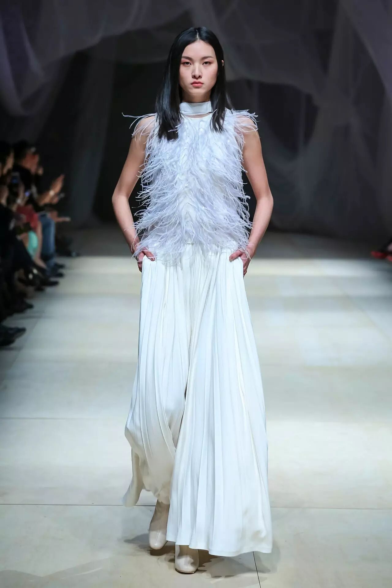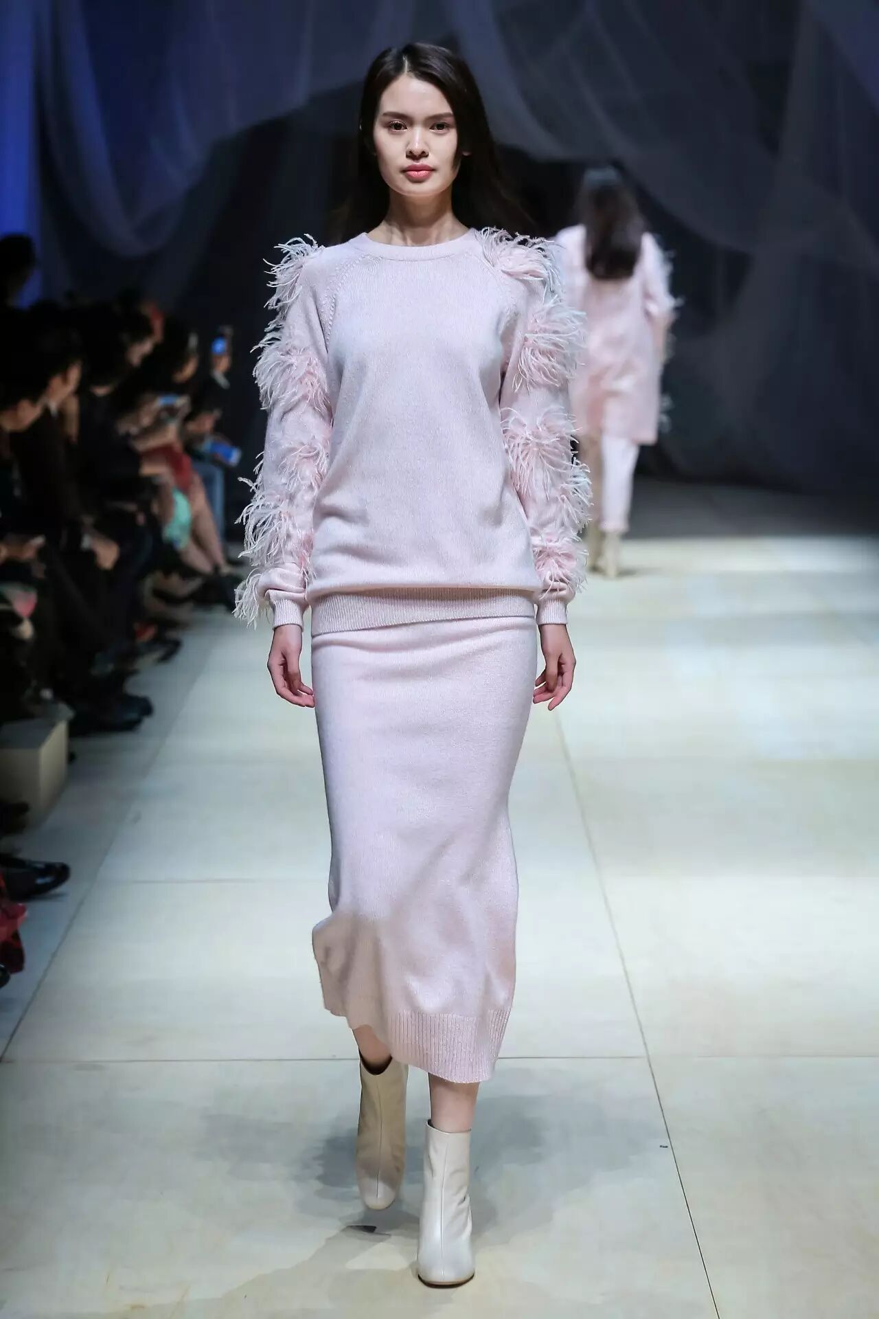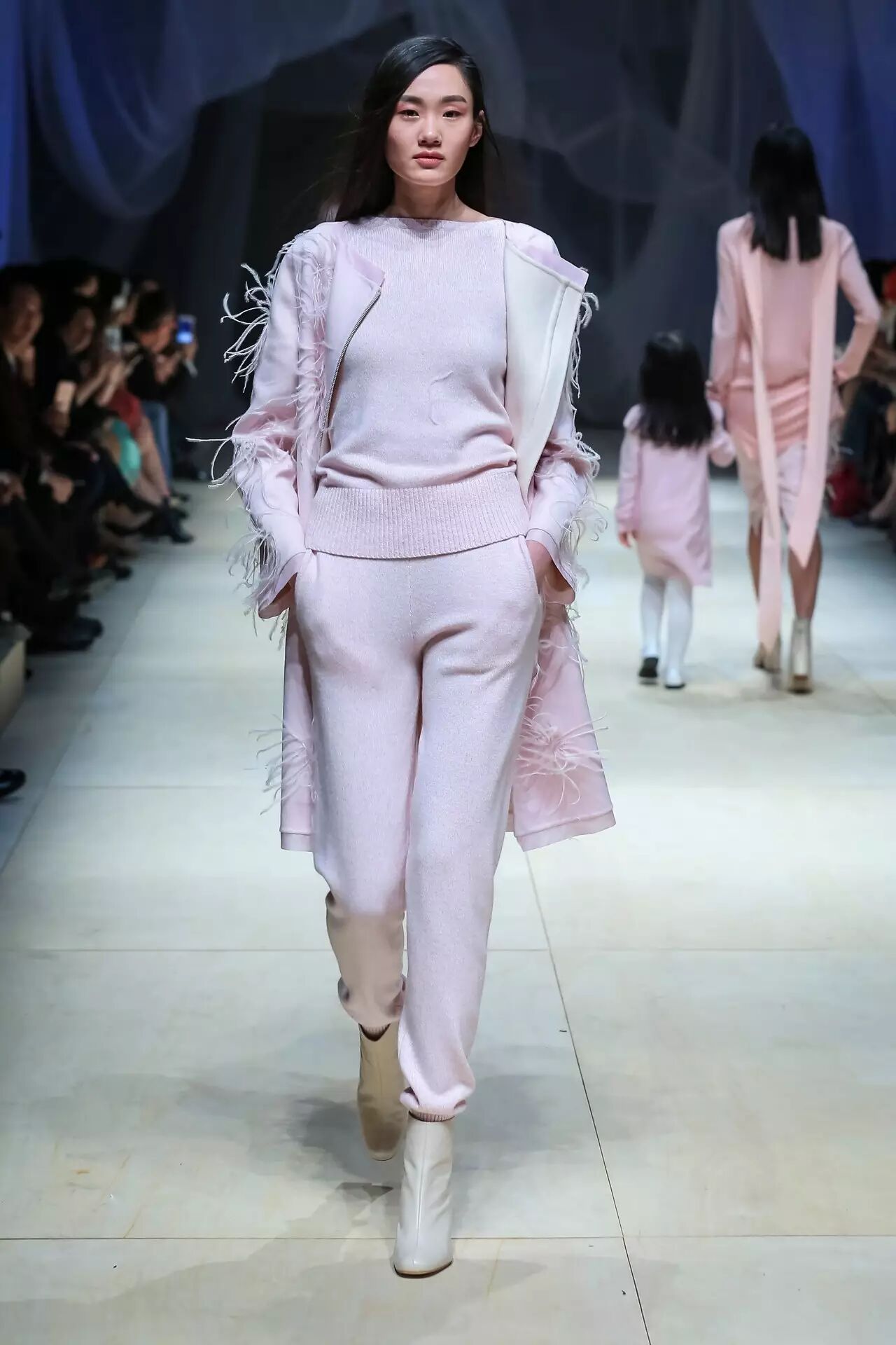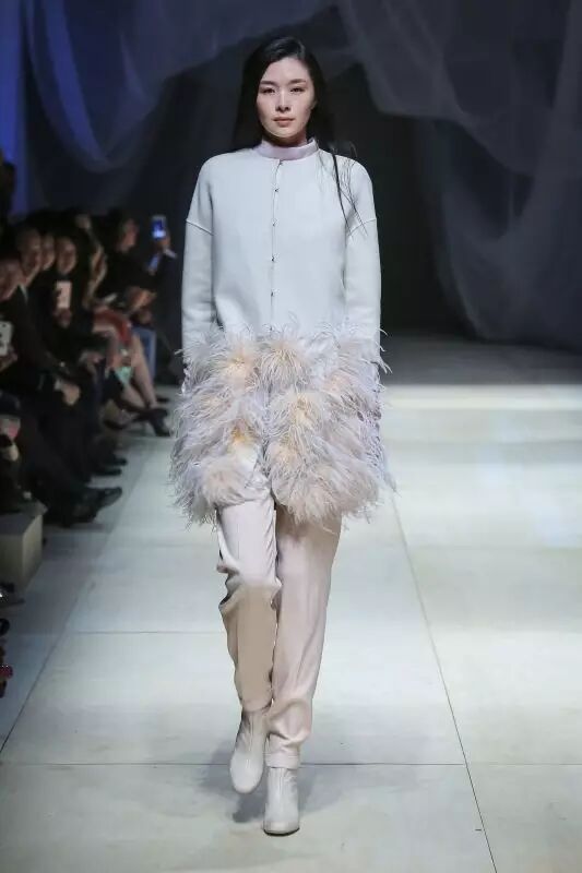 1436 Cashmere Emotion高定系列中,林心如穿着的就是这款粉色小山羊绒呢轻羽外套,独特的羽毛元素由印度手工艺师手工精心缝制。去除皮草的臃肿感,取而代之的是跟随步伐的飘动轻盈,裙袂飞扬间芳姿尽显。