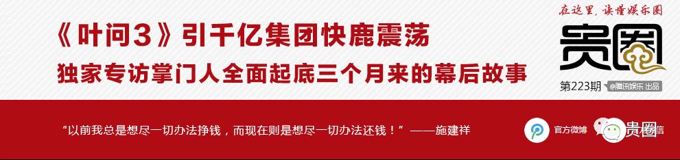 一石激起千层浪。因为快鹿集团在旗下当天财富、当天金融,以及苏宁、京东等互联网金融平台上,都发放过以《叶问3》的票房收益分红为预期的金融理财产品,从普通百姓手里募集了大量资金。到了3月25日,快鹿旗下金鹿财行发行的部分金融产品到期,但投资人却无法兑付,引发快鹿资金链断裂。4月中旬,大银幕团队宣布解散,宣传方火传媒也开始遣散员工。施建祥本人也已经前往美国,他和他的旗下公司至此消失在中国电影市场的版图中。