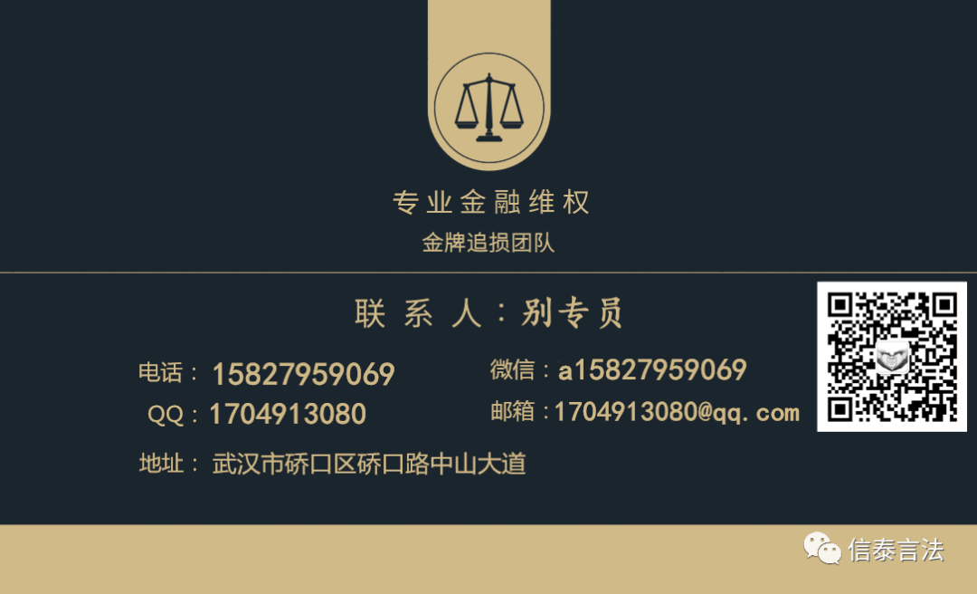 特此声明:关于保密义务:从客户咨询的那一刻起我们的保密工作即正式启动,并延续到合同终结后的任意时间,终生保密!我们律所是司法局批准设立,有专业处理金融维权团队,属于司法厅监管,且跟委托人签订合同,保障每一位委托人的权益。
